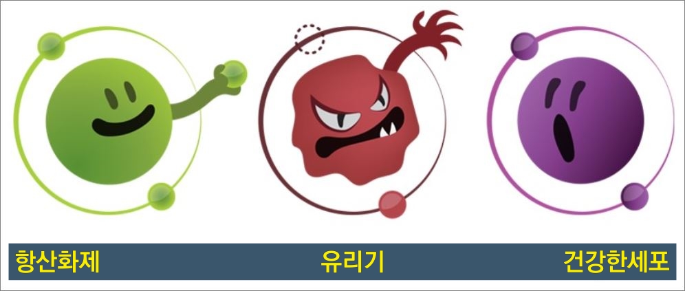 항산화제는 우리 몸의 다양한 화학작용의 하나이며, 건강을 지키기 위한 가장 중요한 작용 중의 하나입니다. 간단하게 말하면 항산화제는 세포들이 자신들의 위치에서 자신들의 역할을 감당합니다. 그런데 활성산소와 같은 자유 라디칼 세포가 접근하여 세포를 파괴시킵니다. 그럼 세포는 파괴되어 소멸하거나 기형적인 형태로 변화되어 기능을 상실하게 됩니다. 이런 기형적인 변형을 통해 우리 몸은 병이 들게 되고, 제 기능을 감당하지 못하게 됩니다.
